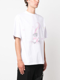 teddy bear-print cotton T-shirt Highlights - Optical white - Cotton - Teddy bear print - Round neck - Short sleeves - Straight hem - Unisex - When buying this unisex item, keep in mind that it is graded in standard men's sizing. Imported Composition Cotton 100% SIZE & FIT Model measurements Height 5 ft 9 in(1.76 m) Bust/Chest 33.07 in(84 cm) Hips 34.64 in(88 cm) Waist 25.59 in(65 cm) Measurement CHEST 43.3 in(110 cm) SLEEVE LENGTH 8.26 in(21 cm) Shoulder Width 20.47 in(52 cm) LENGTH 25.59 in(65 cm) FittingInformation This piece is unisex – if you usually select men's sizing expect a loose fit throughout; if you usually select women's sizes, expect an oversized fit Made from a midweight non-stretch fabric, this piece offers minimal elasticity when worn