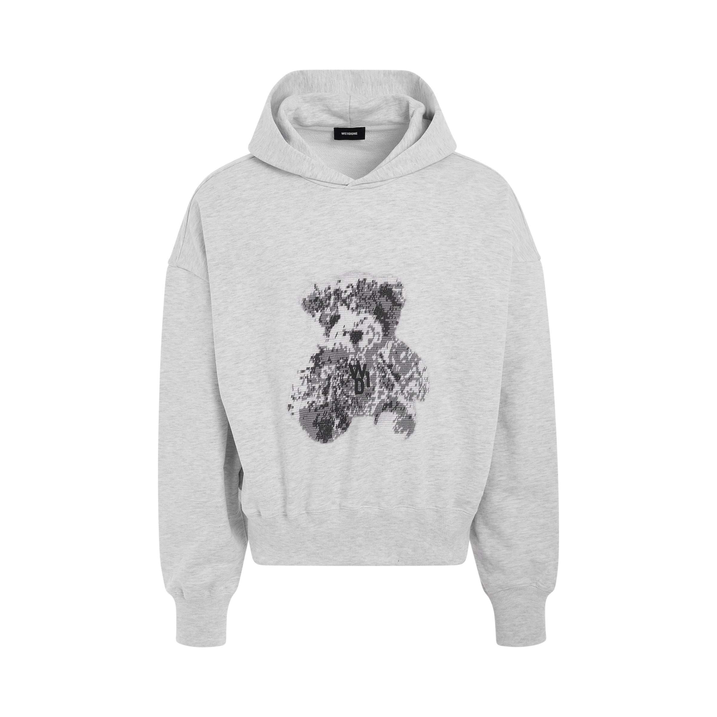 Long sleeves hoodie in grey with cotton featuring in pixel teddy print to the front with a subtle logo patch at the back together with classic hood. • Composition: 100%Cottton • Long sleeves • Classic hood • Graphic teddy bear print to the front • Elasticated waistband SKU: WDTH123994UGY