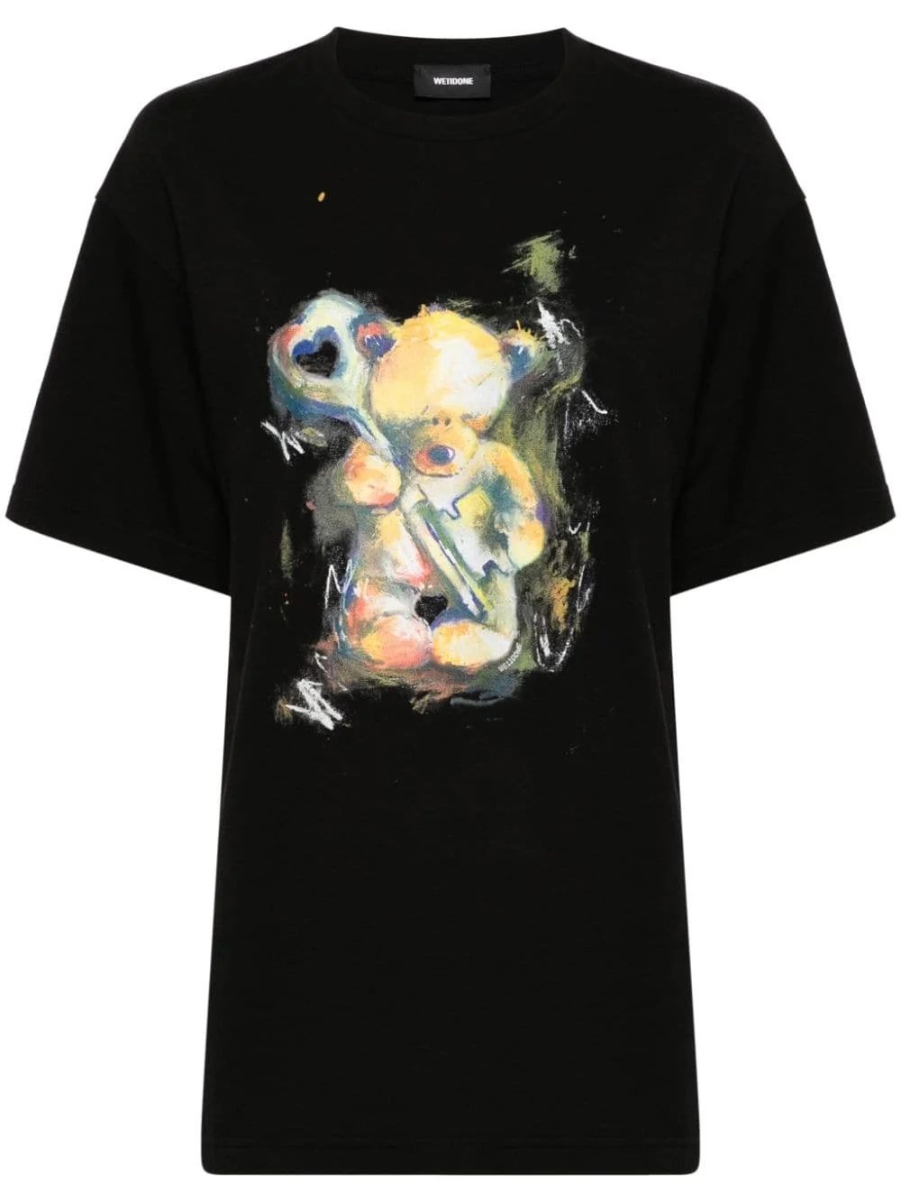teddy printed T-shirt Highlights - Black/multicolor - Cotton - Jersey texture - Crew neck - Graphic print to the front - Short sleeves - Straight hem Imported Composition Cotton 100% SIZE & FIT Model measurements Height 5 ft 10 in(1.77 m) Bust/Chest 31.49 in(80 cm) Hips 35.43 in(90 cm) Waist 25.19 in(64 cm) FittingInformation Designed to be unstructured, offering a loose fit throughout Made from a midweight non-stretch fabric, this piece offers minimal elasticity when worn