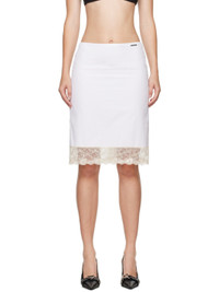 Cotton poplin skirt. · Logo hardware at front · Sequinned lace trim at hem · Concealed zip closure at side seam · Central vent at back hem · Full nylon satin lining Supplier color: White Body: 100% cotton. Lining: 100% nylon. Made in South Korea 242327F092003