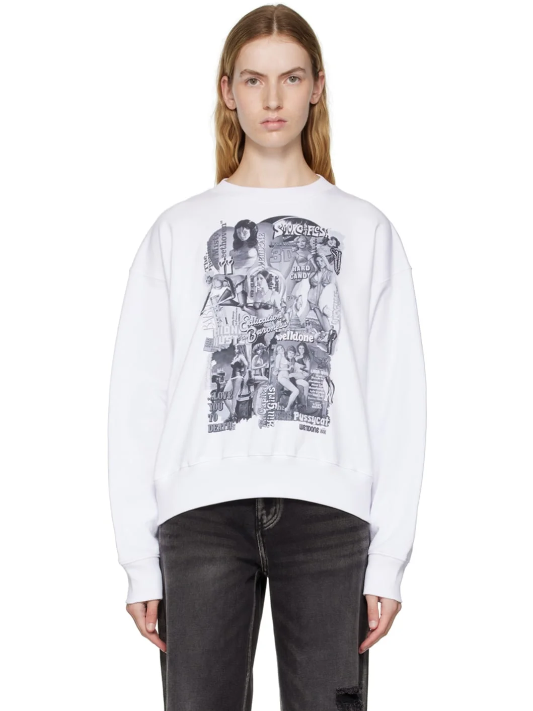 French terry sweatshirt. · Rib knit crewneck, cuffs, and hem · Logo graphic printed at front · Printed logo and rubberized logo patch at back Supplier color: White 100% cotton. Made in South Korea 222327F098001