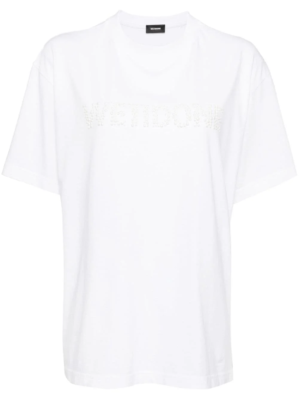 Pearl Logo T-shirt Highlights - White - Cotton - Faux-pearl embellishment - Drop shoulder - Short sleeves - Embroidered logo to the rear hem Imported Composition Cotton 100% SIZE & FIT Model measurements Height 5 ft 10 in(1.77 m) Bust/Chest 27.95 in(71 cm) Hips 34.64 in(88 cm) Waist 22.83 in(58 cm) FittingInformation Designed for a relaxed fit, this piece allows for comfort and movement when worn Made from a midweight non-stretch fabric, this piece offers minimal elasticity when worn