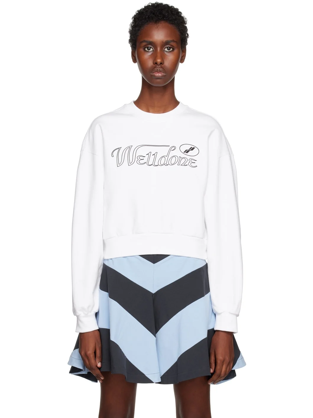 Cotton fleece sweatshirt. · Rib knit crewneck, hem, and cuffs · Logo printed at front · Rubberized logo patch at back hem Supplier color: White 100% cotton. Made in South Korea 222327F098004