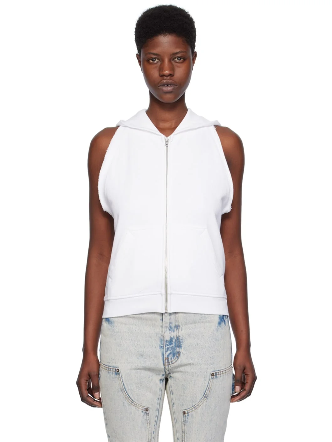 White Sleeveless Hoodie