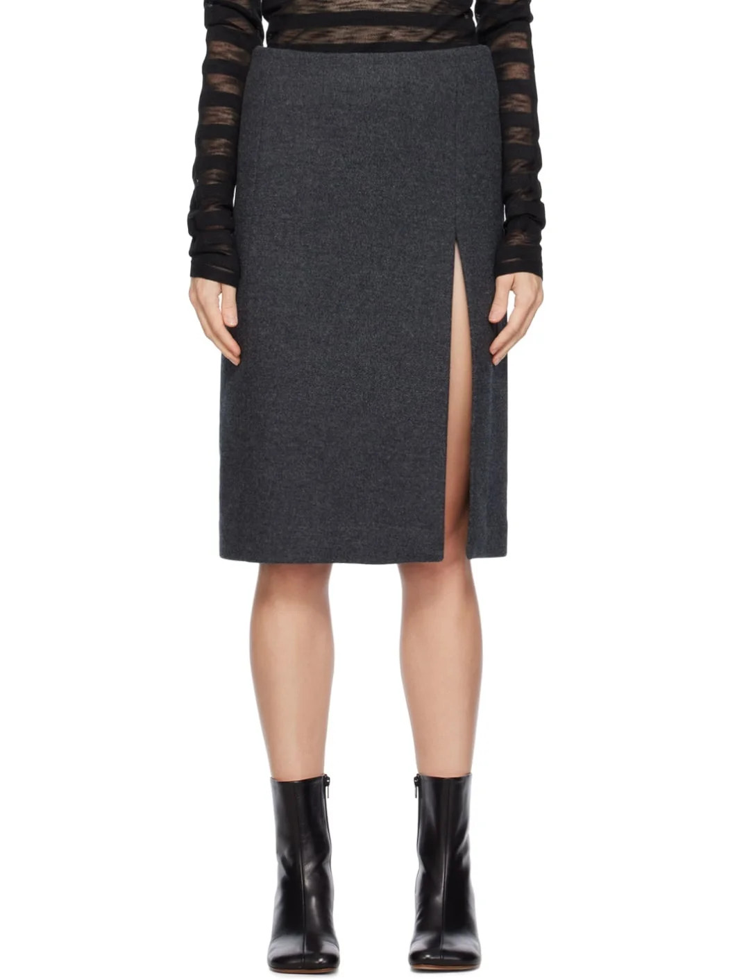 Felted wool-blend skirt. · Vent at front · Zip fastening at back · Full satin lining Supplier color: Dark grey Body: 75% wool, 20% nylon, 5% cashmere. Lining: 52% polyester, 48% rayon. Made in South Korea 232327F090005