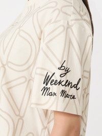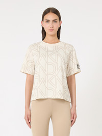 DETAILS Basic T-shirt customised with all-over print detail and embroidery on the left sleeve. T-shirt in pure organic cotton jersey fabric Boxy fit Rib-knit crew neckline Drop-shoulder short sleeves COMPOSITION AND CARE Jersey fabric 100% cotton; - exclusive of embroideries. Hand wash cold (40°c max); do not bleach; do not tumble dry; flat drying in the shade; cool iron; do not dry clean; do not wet clean.; iron with a cloth between.; using neutral detergent.; turn the articles inside out before washing.; to be ironed on reverse. Distributed by Max Mara S.r.l., registered office in Reggio Emilia (Italy), Via Giulia Maramotti 4, 42124 (IT)