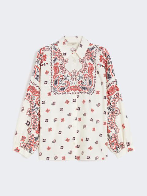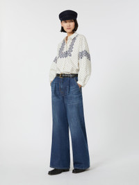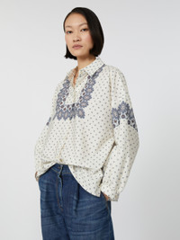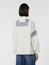 DETAILS Loose-fit shirt with small side slit detail at the hem. - Printed pure cotton poplin shirt - Classic pointed collar - Long set-in sleeves with buttoned cuffs - Branded mother-of-pearl button fastening COMPOSITION AND CARE 100% cotton. Machine wash cold delicate cycle; do not bleach; do not tumble dry; line drying in the shade; cool iron; professionally dry clean perchloroethylene - mild process.; wash the garment while it is fastened.; turn the articles inside out before washing.; contains non-textile parts of animal origin. Distributed by Max Mara S.r.l., registered office in Reggio Emilia (Italy), Via Giulia Maramotti 4, 42124 (IT)