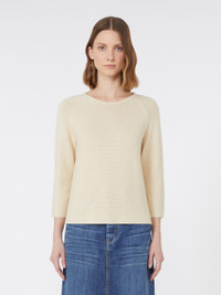 DETAILS Relaxed-fit link-stitched sweater. - Pure cotton yarn sweater - Rib-knit boat neckline - Raglan bracelet sleeves - Regular length - Raw-cut cuffs and hem COMPOSITION AND CARE 100% cotton. Hand wash cold; do not bleach; do not tumble dry; flat drying in the shade; cool iron; professionally dry clean perchloroethylene - mild process; do not wet clean.; iron with a cloth between.; using neutral detergent. Distributed by Max Mara S.r.l., registered office in Reggio Emilia (Italy), Via Giulia Maramotti 4, 42124 (IT)