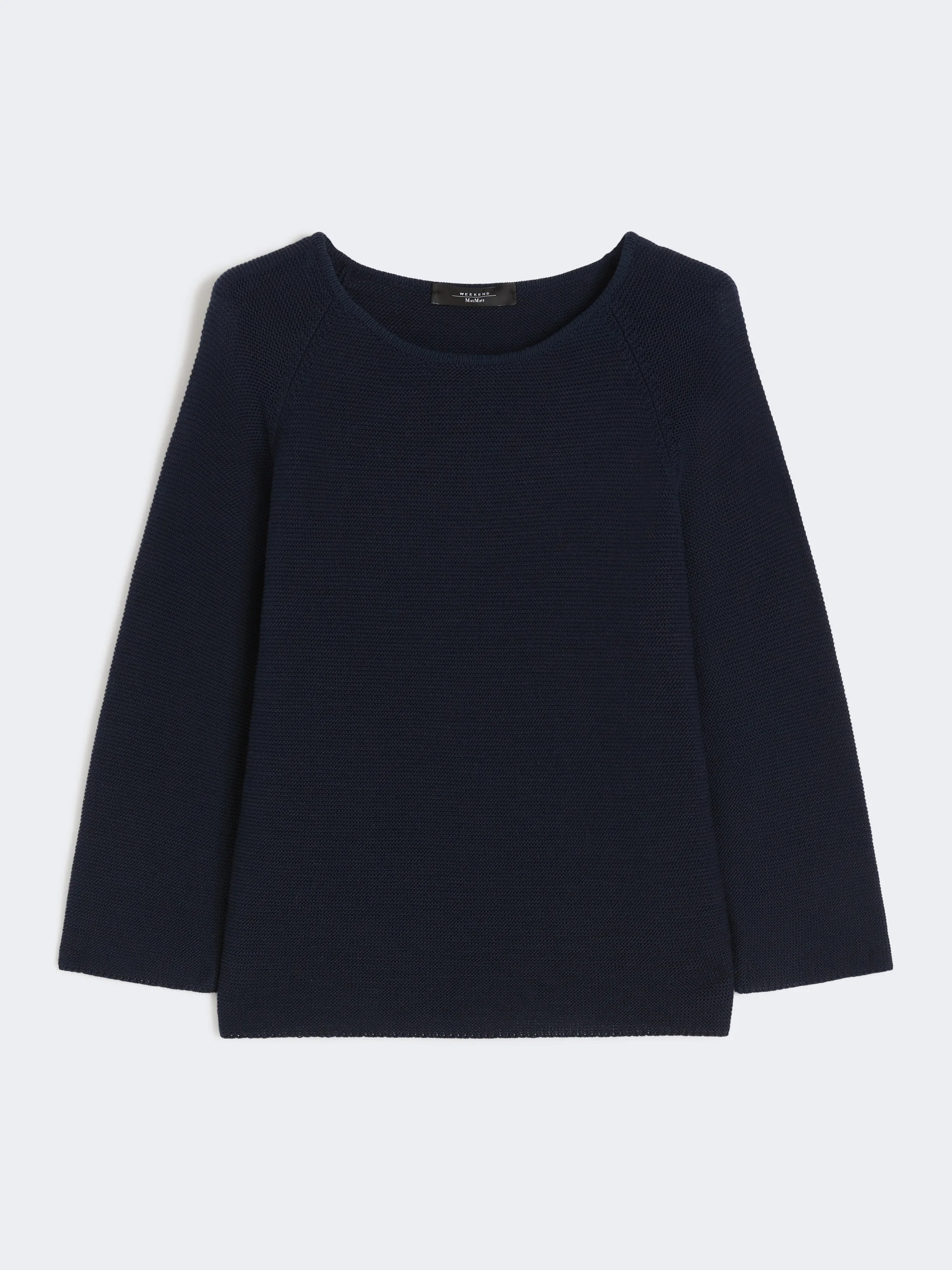 DETAILS Relaxed-fit link-stitched sweater. - Pure cotton yarn sweater - Rib-knit boat neckline - Raglan bracelet sleeves - Regular length - Raw-cut cuffs and hem COMPOSITION AND CARE 100% cotton. Hand wash cold; do not bleach; do not tumble dry; flat drying in the shade; cool iron; professionally dry clean perchloroethylene - mild process; do not wet clean.; iron with a cloth between.; using neutral detergent. Distributed by Max Mara S.r.l., registered office in Reggio Emilia (Italy), Via Giulia Maramotti 4, 42124 (IT)