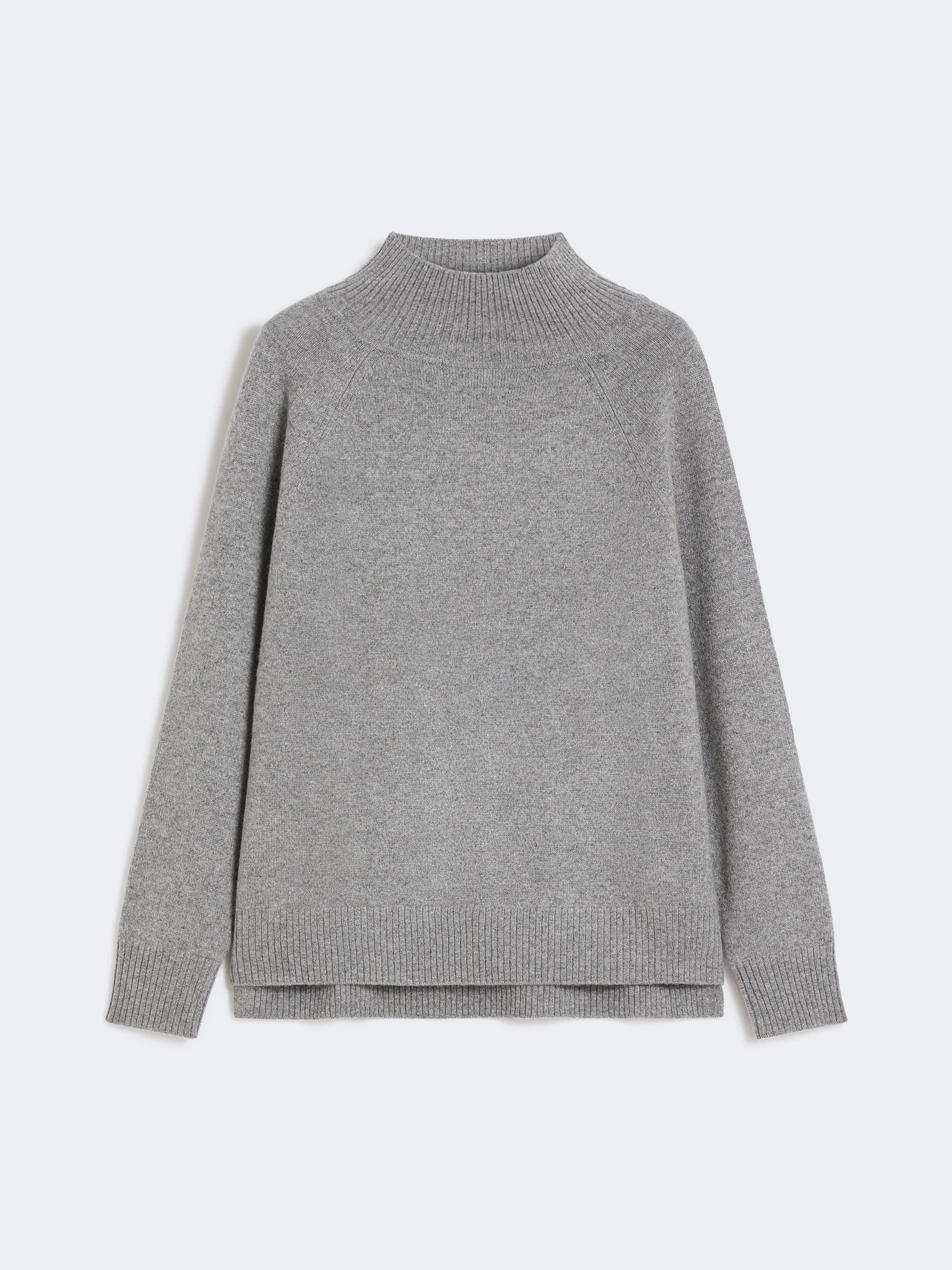 DETAILS Turtleneck jumper with small side slits and hem slightly longer at the back. Pure cashmere yarn turtleneck Loose fit High neck Long raglan sleeves Ribbed trim COMPOSITION AND CARE Knitted fabric 100% cashmere; knitted fabric except joining thread. Hand wash cold (40°c max); do not bleach; do not tumble dry; flat drying in the shade; cool iron; professionally dry clean perchloroethylene - mild process; do not wet clean.; using neutral detergent.; iron with a cloth between. Distributed by Max Mara S.r.l., registered office in Reggio Emilia (Italy), Via Giulia Maramotti 4, 42124 (IT)
