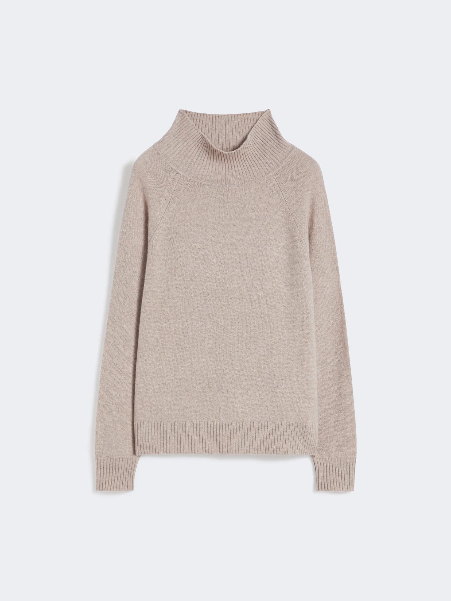 DETAILS Turtleneck jumper with small side slits and hem slightly longer at the back. Pure cashmere yarn turtleneck Loose fit High neck Long raglan sleeves Ribbed trim COMPOSITION AND CARE Knitted fabric 100% cashmere; knitted fabric except joining thread. Hand wash cold (40°c max); do not bleach; do not tumble dry; flat drying in the shade; cool iron; professionally dry clean perchloroethylene - mild process; do not wet clean.; using neutral detergent.; iron with a cloth between. Distributed by Max Mara S.r.l., registered office in Reggio Emilia (Italy), Via Giulia Maramotti 4, 42124 (IT)