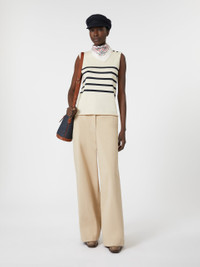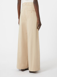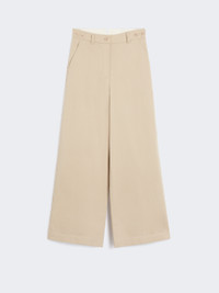 DETAILS Trousers decorated with 4-hole buttons at the waist and a small central V-dart at the back. Pure cotton gabardine trousers Comfort fit and wide leg Fly-covered zip and button fastening Slant side pockets Buttoned welt rear pockets COMPOSITION AND CARE Fabric 100% cotton; lining 100% cotton. Machine wash cold delicate cycle; do not bleach; do not tumble dry; line drying in the shade; cool iron; professionally dry clean perchloroethylene - mild process.; turn the articles inside out before washing. Distributed by Max Mara S.r.l., registered office in Reggio Emilia (Italy), Via Giulia Maramotti 4, 42124 (IT)