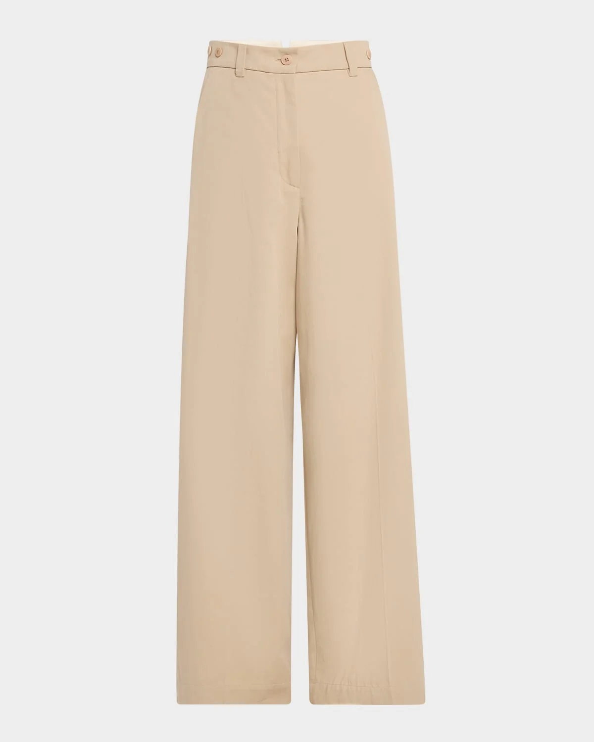 Weekend Max Mara "Alfeo" trousers crafted in pure cotton gabardine Highrise sits high on the hips Flat front Side slant pocket Back buttoned welt pockets Full length Wide legs Button/zip fly; belt loops Cotton Lining: Cotton Machine wash cold Made in Morocco