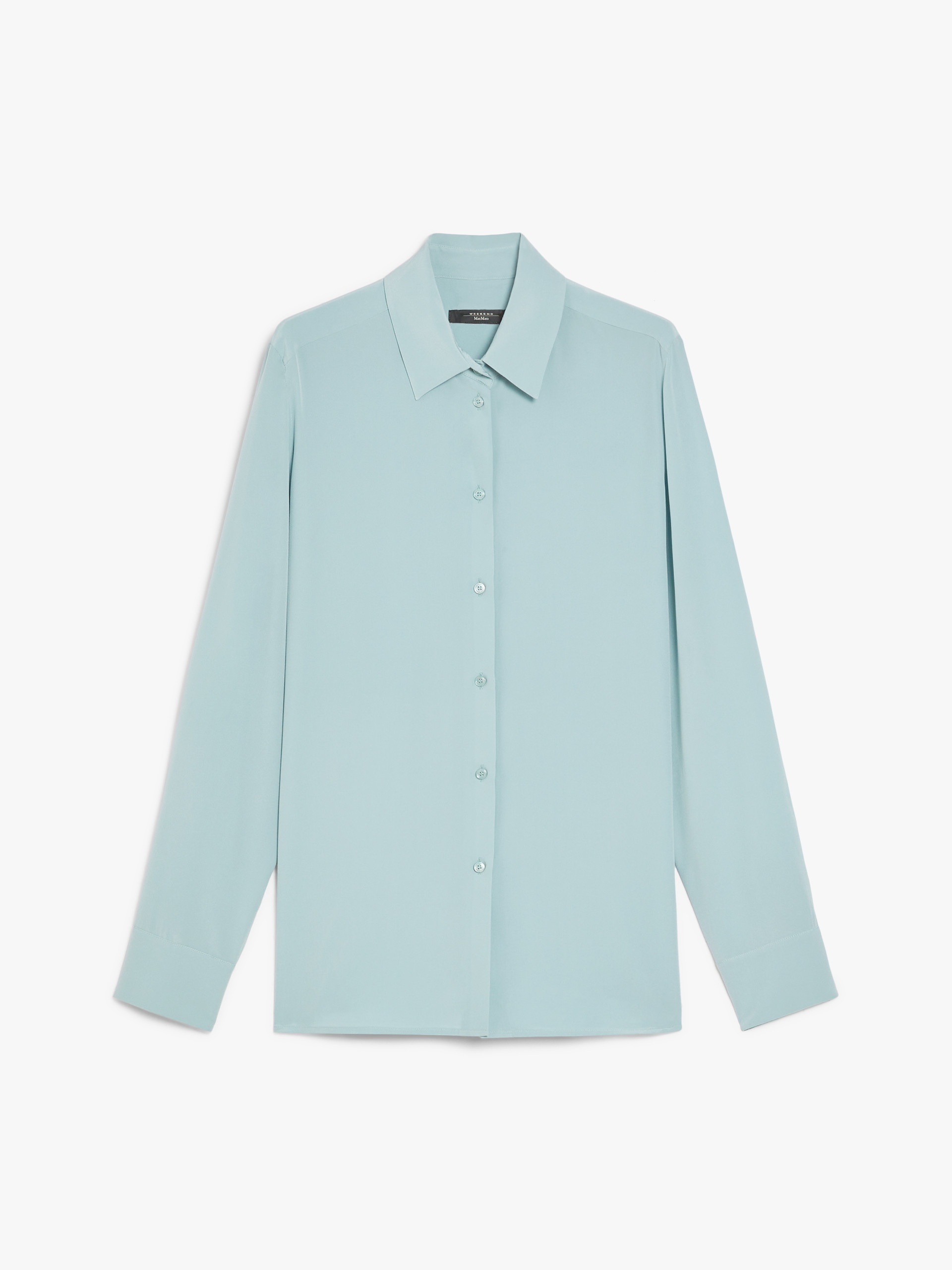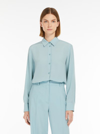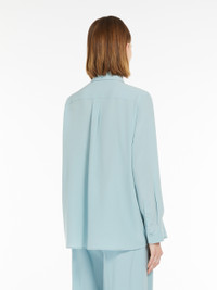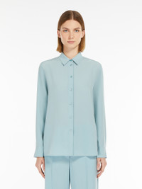 DETAILS Relaxed-fit shirt in fine pure silk fabric featuring a slightly flared hem cut, classic collar and buttoned cuff-adorned long set-in sleeves. Embellished with a rounded hem, rear yoke and central rear pleat. Visible button fastening on the front. COMPOSITION AND CARE 100% silk. Hand wash cold; do not bleach; do not tumble dry; line drying in the shade; cool iron; professionally dry clean perchloroethylene - mild process; do not wet clean.; wash the garment while it is fastened.; turn the articles inside out before washing.; iron with a cloth between.; contains non-textile parts of animal origin. Distributed by Max Mara S.r.l., registered office in Reggio Emilia (Italy), Via Giulia Maramotti 4, 42124 (IT)