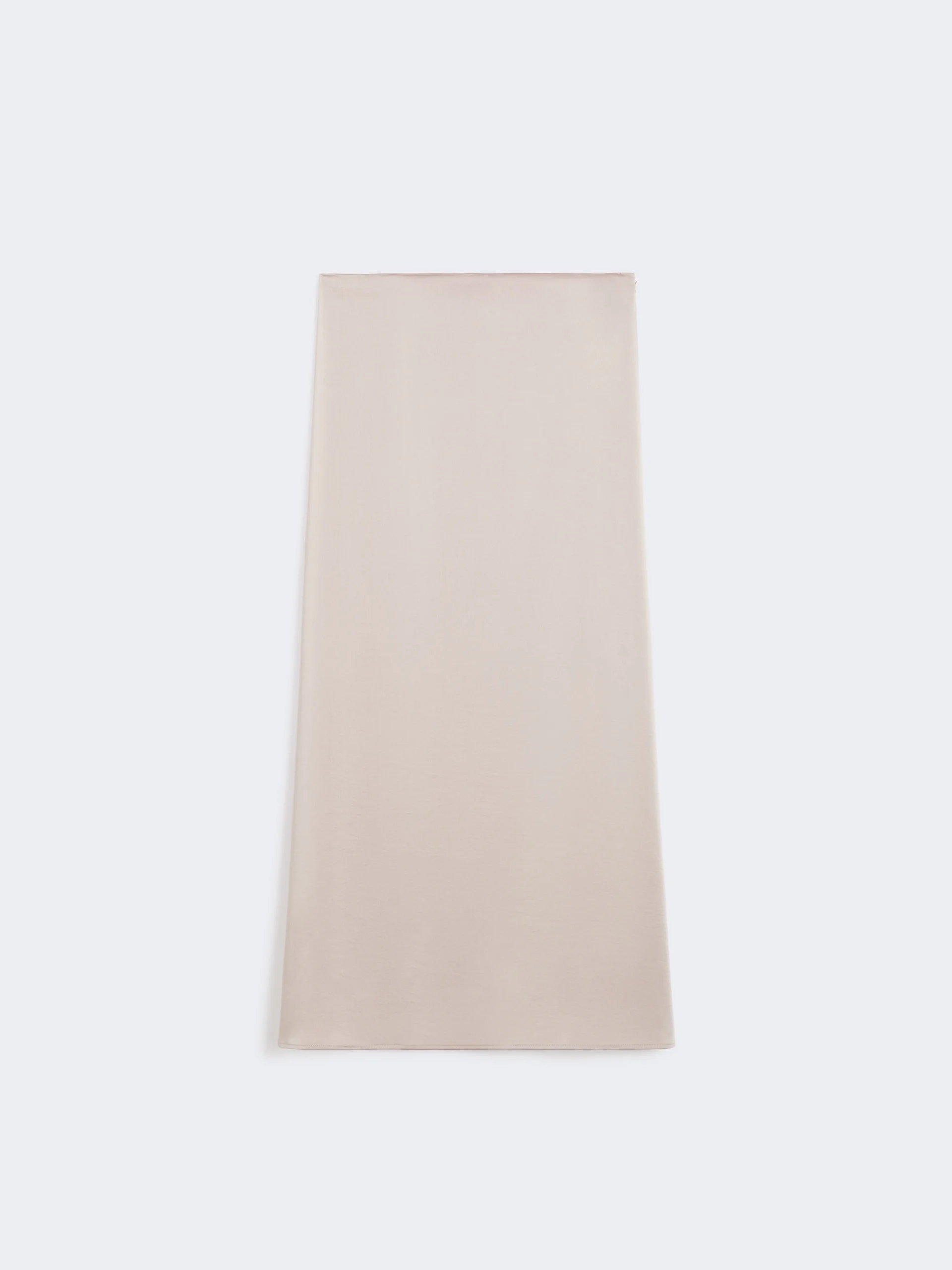 DETAILS Feminine-fit calf-length skirt. - Satin skirt - Fluid fit - Side zip fastening - Aligned slit detail on the right side - Sewn pleats at the back of the waist - Unlined model COMPOSITION AND CARE 100% polyester. Machine wash cold delicate cycle; do not bleach; do not tumble dry; line drying in the shade; cool iron; professionally dry clean perchloroethylene - mild process. Distributed by Max Mara S.r.l., registered office in Reggio Emilia (Italy), Via Giulia Maramotti 4, 42124 (IT)