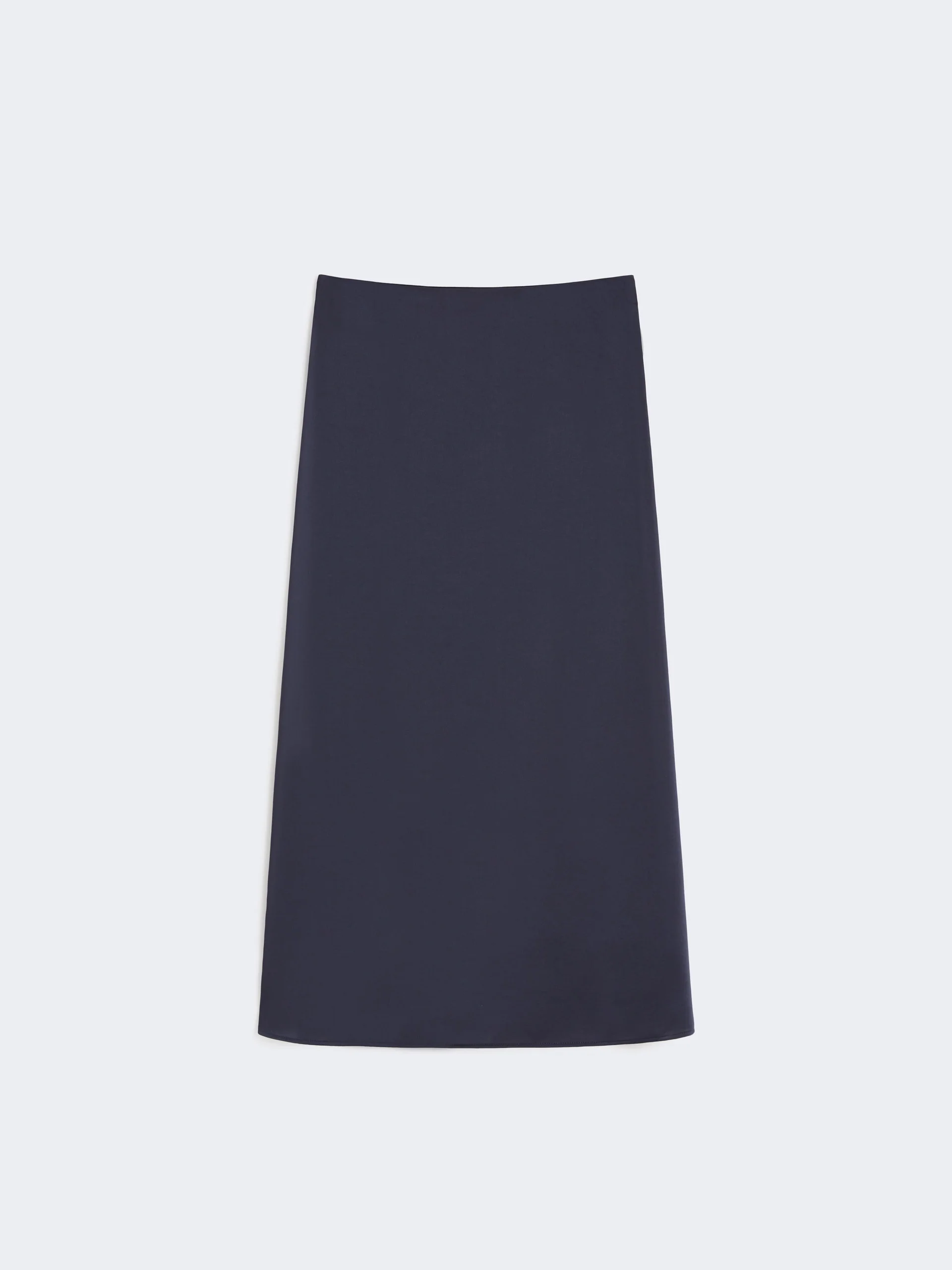 DETAILS Feminine-fit calf-length skirt. Satin skirt Fluid fit Side zip fastening Aligned slit detail on the right side Sewn pleats at the back of the waist Unlined model COMPOSITION AND CARE 100% polyester. Machine wash cold delicate cycle; do not bleach; do not tumble dry; line drying in the shade; cool iron; professionally dry clean perchloroethylene - mild process. Distributed by Max Mara S.r.l., registered office in Reggio Emilia (Italy), Via Giulia Maramotti 4, 42124 (IT)