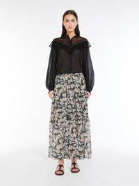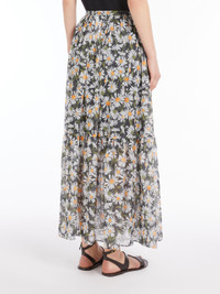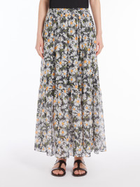 DETAILS Long skirt in pure silk georgette fabric featuring an all-over floral print. The full flared model boasts flounce detail at the hem, a removable cotton voile slip and a concealed zip fastening at the side. The piece is part of the “Lost in the Garden” capsule, inspired by Riviera gardens and the '70s. Light fabrics, floral details and natural hues for a season that celebrates the free spirit of the Weekend woman. COMPOSITION AND CARE Skirt 100% silk. Petticoat fabric 100% polyester; - exclusive of decoration. Skirt: do not wash; do not bleach; do not tumble dry; cool iron; professionally dry clean perchloroethylene - mild process; do not wet clean. Petticoat: machine wash cold delicate cycle; do not bleach; do not tumble dry; line drying in the shade; cool iron; professionally dry clean perchloroethylene - mild process.; Do not iron the decoration. Distributed by Max Mara S.r.l., registered office in Reggio Emilia (Italy), Via Giulia Maramotti 4, 42124 (IT)