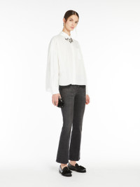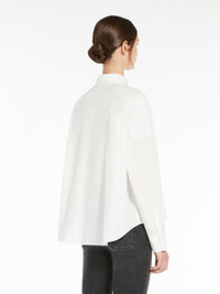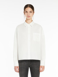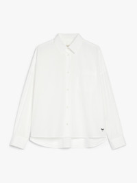 DETAILS Oversized shirt in pure cotton poplin fabric. The model boasts a classic collar, buttoned cuff-adorned long low set-in sleeves and a patch breast pocket. Embellished with a darted rear yoke and subtle high-low asymmetrical rounded hem design. Button fastening. The garment's main fabric contains at least 50% cotton fibre grown according to the organic farming principles. COMPOSITION AND CARE Fabric 100% cotton; - exclusive of embroideries. Machine wash cold delicate cycle; do not bleach; do not tumble dry; line drying in the shade; cool iron; professionally dry clean perchloroethylene - mild process.; wash the garment while it is fastened.; turn the articles inside out before washing.; contains non-textile parts of animal origin. Distributed by Max Mara S.r.l., registered office in Reggio Emilia (Italy), Via Giulia Maramotti 4, 42124 (IT)