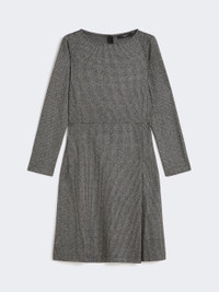 DETAILS Short dress, cut at the waist with a side-offset pleat motif that brings movement to the garment. Viscose-blend jacquard jersey dress Slightly fitted line Boat neck Long set-in sleeves Side inset pockets Unlined COMPOSITION AND CARE 77% viscose, 22% polyester, 1% elastane. Do not wash; do not bleach; do not tumble dry; cool iron; professionally dry clean perchloroethylene - mild process; do not wet clean.; iron with a cloth between. Distributed by Max Mara S.r.l., registered office in Reggio Emilia (Italy), Via Giulia Maramotti 4, 42124 (IT)
