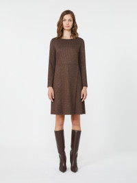 DETAILS Short dress, cut at the waist with a side-offset pleat motif that brings movement to the garment. Viscose-blend jacquard jersey dress Slightly fitted line Boat neck Long set-in sleeves Side inset pockets Unlined COMPOSITION AND CARE 77% viscose, 22% polyester, 1% elastane. Do not wash; do not bleach; do not tumble dry; cool iron; professionally dry clean perchloroethylene - mild process; do not wet clean.; iron with a cloth between. Distributed by Max Mara S.r.l., registered office in Reggio Emilia (Italy), Via Giulia Maramotti 4, 42124 (IT)