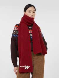 DETAILS Long, wrap-around scarf, customised with a "W" patch on the hem. Pure wool yarn scarf Cob stitch knit Straight hem COMPOSITION AND CARE Knitted fabric 100% virgin wool; - exclusive of decoration. Hand wash cold (40°c max); do not bleach; do not tumble dry; flat drying in the shade; cool iron; professionally dry clean perchloroethylene - mild process; do not wet clean.; iron with a cloth between.; using neutral detergent. Distributed by Max Mara S.r.l., registered office in Reggio Emilia (Italy), Via Giulia Maramotti 4, 42124 (IT)