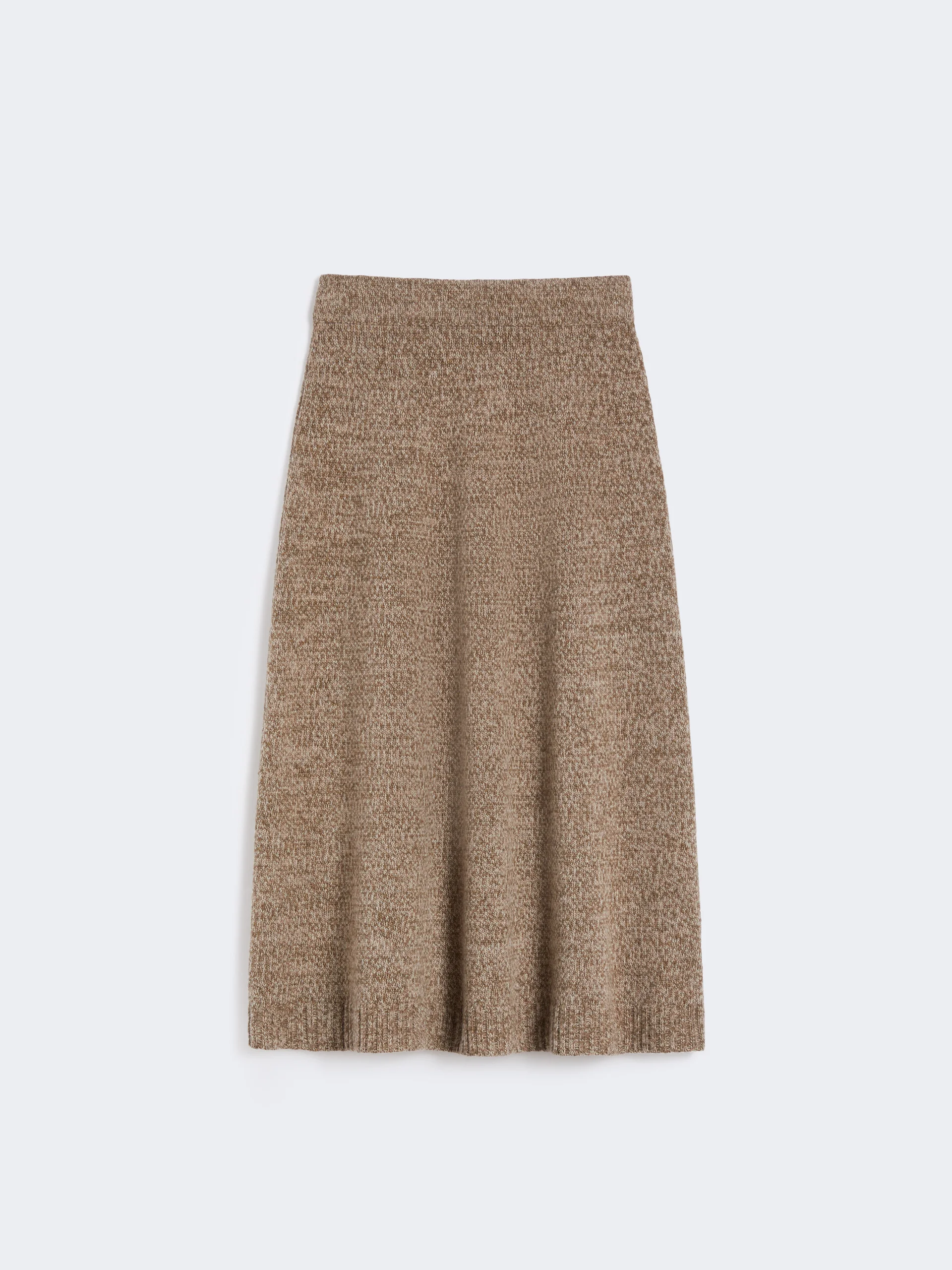 DETAILS Midi skirt with a characteristic A-line silhouette. Pure wool knit skirt Flared Elasticated waist Finished with ribbed edges COMPOSITION AND CARE 100% virgin wool. Hand wash cold (40°c max); do not bleach; do not tumble dry; flat drying in the shade; cool iron; professionally dry clean perchloroethylene - mild process; do not wet clean.; iron with a cloth between.; using neutral detergent. Distributed by Max Mara S.r.l., registered office in Reggio Emilia (Italy), Via Giulia Maramotti 4, 42124 (IT)