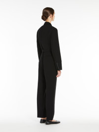 DETAILS Cady wrap jumpsuit. Embellished with double-faced satin details, a peak-lapel collar, breast pocket and long set-in sleeves. Straight-fit trousers featuring darts, pressed pleat detail, slant side pockets and welt rear pockets. Zip fastening and waistline-defining side ties. COMPOSITION AND CARE Fabric 71% triacetate, 29% polyester; fabric 2 100% polyester; lining 100% polyester. Do not wash; do not bleach; do not tumble dry; cool iron; professionally dry clean perchloroethylene - mild process; do not wet clean. Distributed by Max Mara S.r.l., registered office in Reggio Emilia (Italy), Via Giulia Maramotti 4, 42124 (IT)