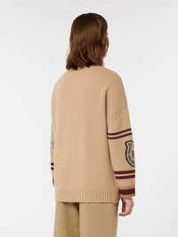 DETAILS Oversized cardigan, embellished with an intarsia knit that creates designs on the front and sleeves. Pure wool yarn cardigan V neck Long sleeves with dropped shoulders Button fastening at the front Ribbed edges COMPOSITION AND CARE 100% virgin wool. Hand wash cold (40°c max); do not bleach; do not tumble dry; flat drying in the shade; cool iron; professionally dry clean perchloroethylene - mild process; do not wet clean.; iron with a cloth between.; using neutral detergent. Distributed by Max Mara S.r.l., registered office in Reggio Emilia (Italy), Via Giulia Maramotti 4, 42124 (IT)