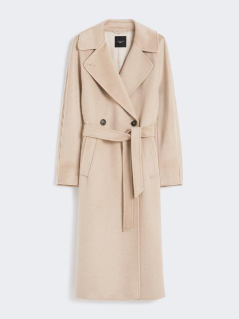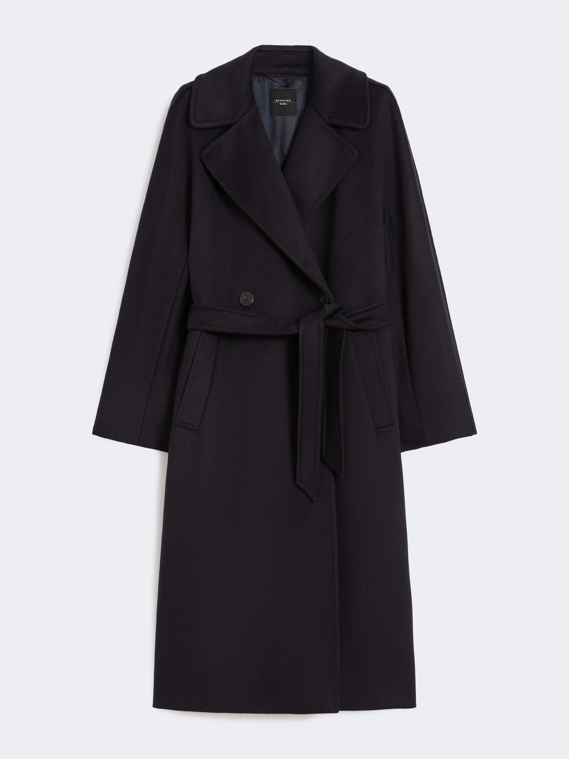 DETAILS Tailored midi coat with matching belt to tie at the waist. Coat in pure wool drap Straight cut Wide lapel collar Long kimono sleeves Button fastening Welt pockets on the sides Lined COMPOSITION AND CARE Fabric 100% virgin wool; lining 50% acetate, 50% viscose. Do not wash; do not bleach; do not tumble dry; cool iron; professionally dry clean perchloroethylene - mild process; do not wet clean. Distributed by Max Mara S.r.l., registered office in Reggio Emilia (Italy), Via Giulia Maramotti 4, 42124 (IT)