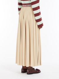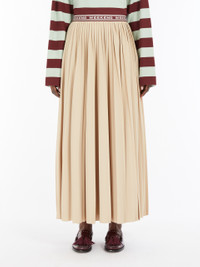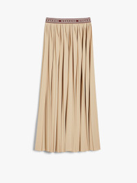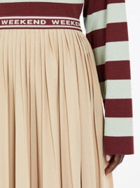 DETAILS Long plisse-pleated skirt in crepe jersey fabric. The flared model boasts an elasticated waist, complete with a Weekend Max Mara logo-decorated jacquard ribbon. COMPOSITION AND CARE 100% polyester. Hand wash cold; do not bleach; do not tumble dry; drip line drying in the shade; do not iron; professionally dry clean perchloroethylene - mild process; do not wet clean.; don’t rub. Distributed by Max Mara S.r.l., registered office in Reggio Emilia (Italy), Via Giulia Maramotti 4, 42124 (IT)