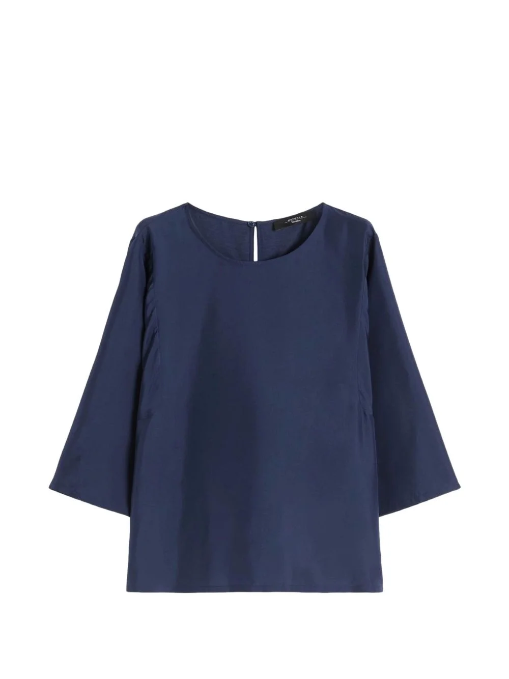 boat-neck silk top Highlights - Blue - Round neck - Three-quarter sleeves - Wide sleeves Imported Composition Fabric 100% Washing instructions Read Manufacturer Guidelines