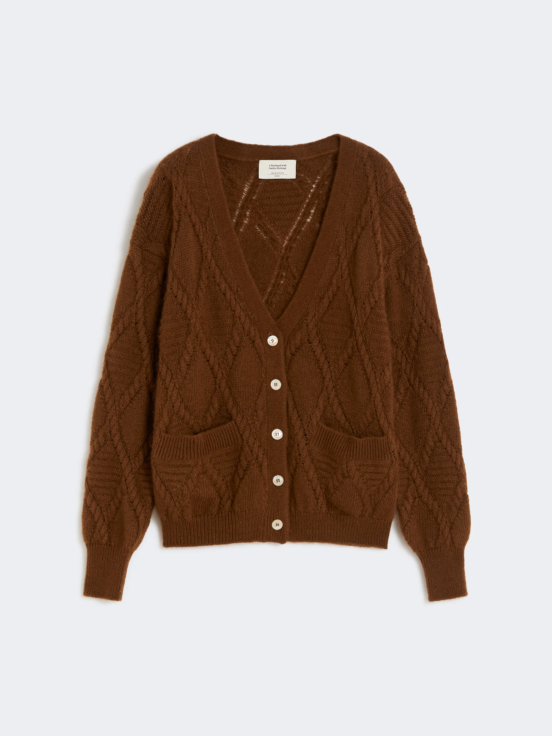 DETAILS "Fine Settimana", the capsule collection designed by Giuliva Heritage for Weekend Max Mara: relaxed tailoring, layering and conscious femininity. Mohair blend cardigan Medium length and relaxed fit V neck Long sleeves with dropped shoulders Mother-of-pearl button front fastening Welt pockets at the front Ribbed trim COMPOSITION AND CARE 34% polyamide, 30% acrylic, 28% mohair, 8% polyester. Hand wash cold (40°c max); do not bleach; do not tumble dry; flat drying in the shade; cool iron; professionally dry clean perchloroethylene - mild process; do not wet clean.; iron with a cloth between.; using neutral detergent. Distributed by Max Mara S.r.l., registered office in Reggio Emilia (Italy), Via Giulia Maramotti 4, 42124 (IT)