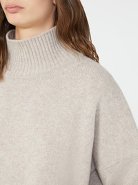 DETAILS Turtleneck jumper with a slightly oversized fit. Pure wool plain-knit jumper Loose fit High neck Long sleeves with dropped shoulders Ribbed edges COMPOSITION AND CARE 100% virgin wool. Hand wash cold (40°c max); do not bleach; do not tumble dry; flat drying in the shade; cool iron; professionally dry clean perchloroethylene - mild process; do not wet clean.; iron with a cloth between.; using neutral detergent. Distributed by Max Mara S.r.l., registered office in Reggio Emilia (Italy), Via Giulia Maramotti 4, 42124 (IT)