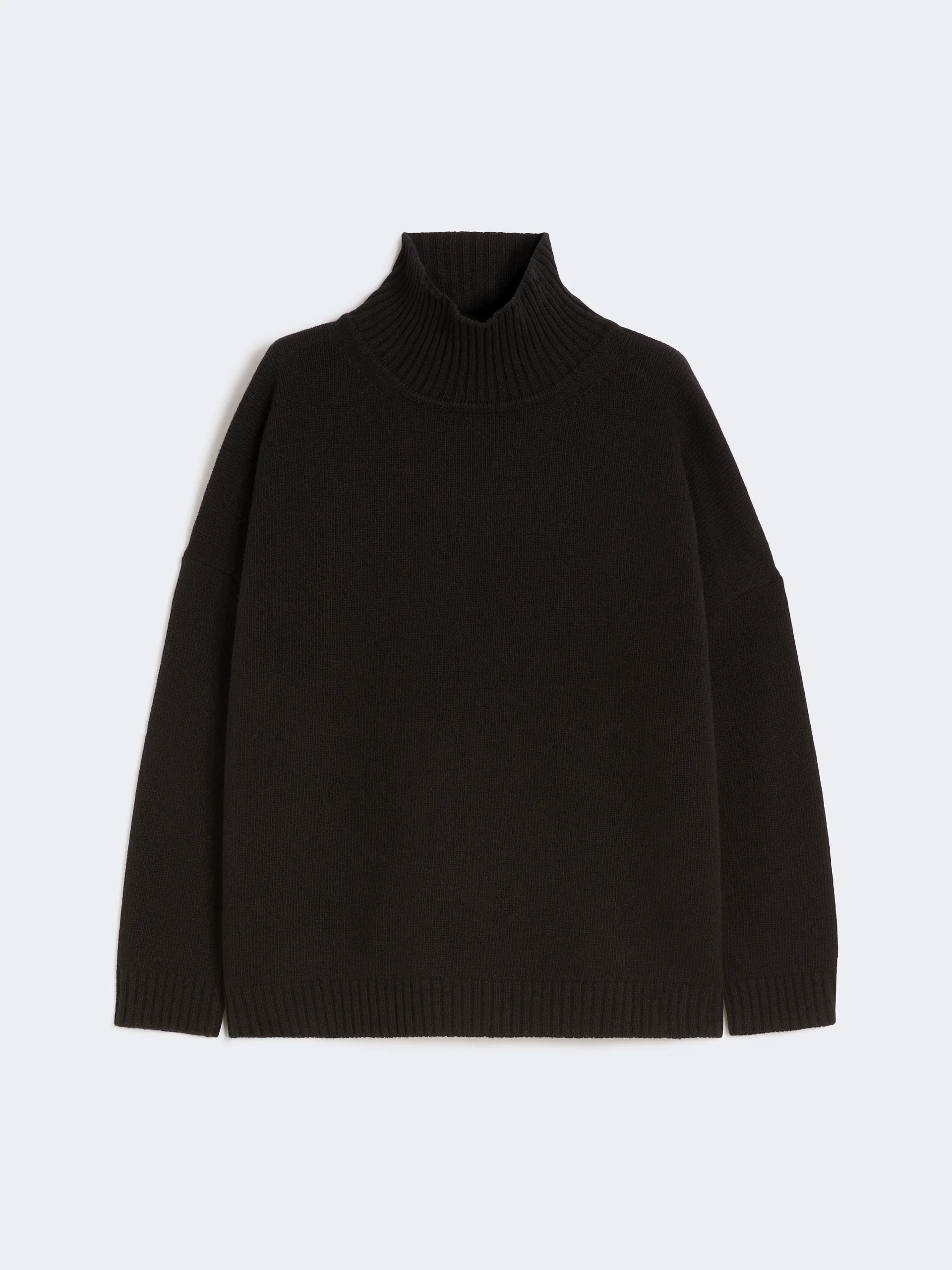 DETAILS Turtleneck jumper with a slightly oversized fit. Pure wool plain-knit jumper Loose fit High neck Long sleeves with dropped shoulders Ribbed edges COMPOSITION AND CARE 100% virgin wool. Hand wash cold (40°c max); do not bleach; do not tumble dry; flat drying in the shade; cool iron; professionally dry clean perchloroethylene - mild process; do not wet clean.; iron with a cloth between.; using neutral detergent. Distributed by Max Mara S.r.l., registered office in Reggio Emilia (Italy), Via Giulia Maramotti 4, 42124 (IT)