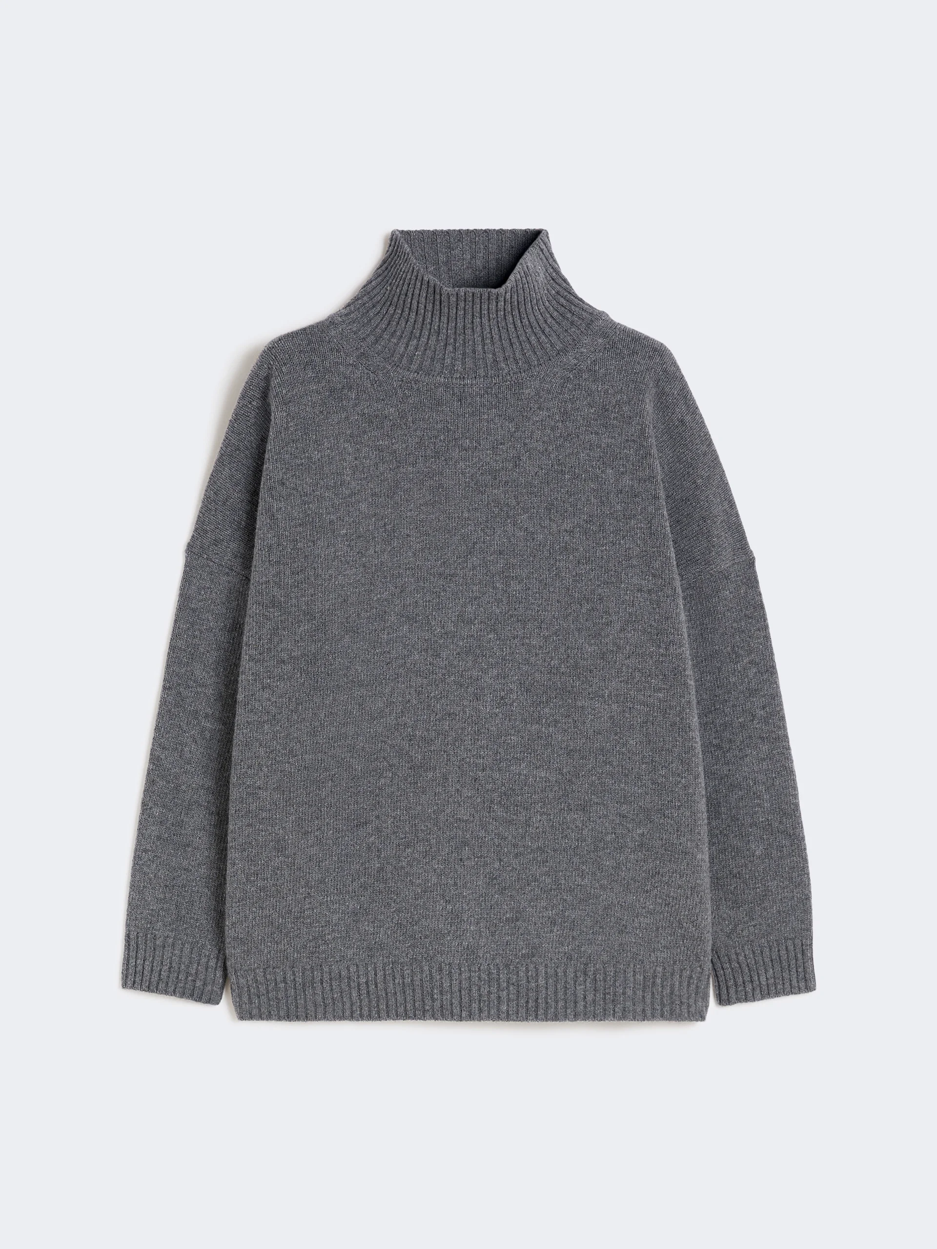 DETAILS Turtleneck jumper with a slightly oversized fit. Pure wool plain-knit jumper Loose fit High neck Long sleeves with dropped shoulders Ribbed edges COMPOSITION AND CARE 100% virgin wool. Hand wash cold (40°c max); do not bleach; do not tumble dry; flat drying in the shade; cool iron; professionally dry clean perchloroethylene - mild process; do not wet clean.; iron with a cloth between.; using neutral detergent. Distributed by Max Mara S.r.l., registered office in Reggio Emilia (Italy), Via Giulia Maramotti 4, 42124 (IT)