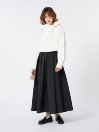 DETAILS Soft lights, winter settings and new style rituals: The Weekend Max Mara Holiday Edit FW25 explores the magical festive season. Long skirt with a wide volume and a gathered pattern that gives movement and structure to the garment. Cotton-blend taffeta skirt Flared Elasticated waist Side inset pockets Unlined COMPOSITION AND CARE 57% polyester, 43% cotton. Machine wash cold delicate cycle; do not bleach; do not tumble dry; line drying in the shade; cool iron; professionally dry clean perchloroethylene - mild process. Distributed by Max Mara S.r.l., registered office in Reggio Emilia (Italy), Via Giulia Maramotti 4, 42124 (IT)