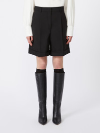 DETAILS Soft lights, winter settings and new style rituals: The Weekend Max Mara Holiday Edit FW25 explores the magical festive season. Tailored-style Bermuda shorts, featuring a slightly flared silhouette and turn-up at the hem. Pure wool canvas Bermuda shorts High waist with belt loops Fastening with a wide waistband tab, zip fly and small hook Slant pockets at the sides Welt pockets with button at the back Trouser crease COMPOSITION AND CARE Fabric 100% virgin wool; lining 100% cotton. Do not wash; do not bleach; do not tumble dry; cool iron; professionally dry clean perchloroethylene - mild process; do not wet clean.; wash the garment while it is fastened. Distributed by Max Mara S.r.l., registered office in Reggio Emilia (Italy), Via Giulia Maramotti 4, 42124 (IT)