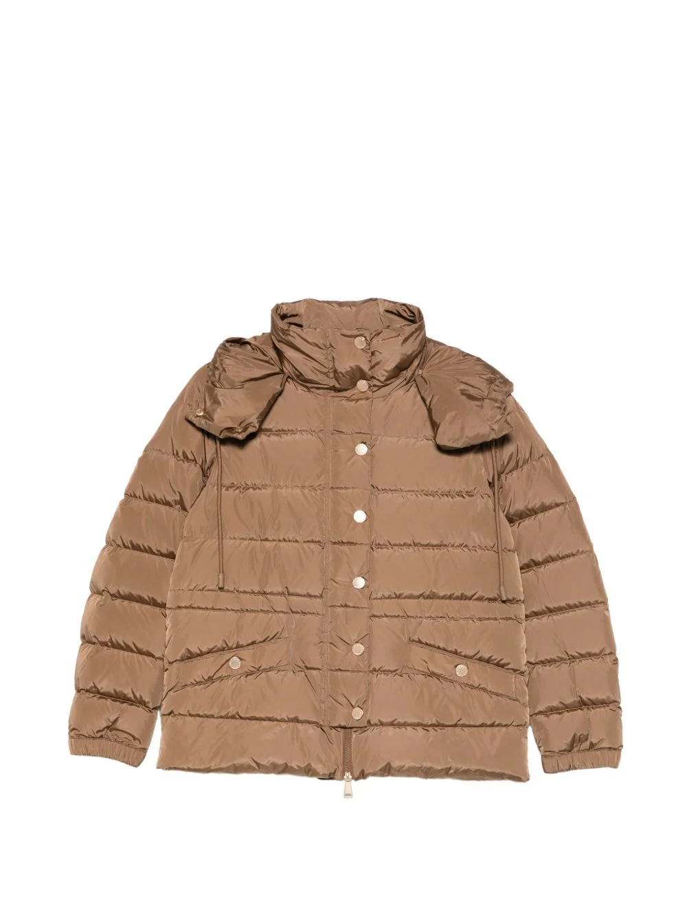 button hooded jacket Highlights - Brown - Quilted - Front button fastening - Side flap pockets - Drawstring hood - High neck Imported Composition Outer: Polyamide 100% Lining: Polyamide 100% Washing instructions Dry Clean Only
