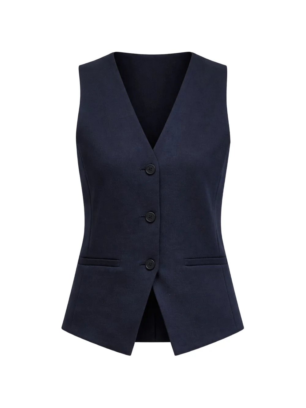 buttoned V-neck waistcoat Highlights - Dark blue - V-neck - Button fastening - Front pockets - Sleeveless - Cotton Imported Composition Cotton 100% Washing instructions Read Manufacturer Guidelines
