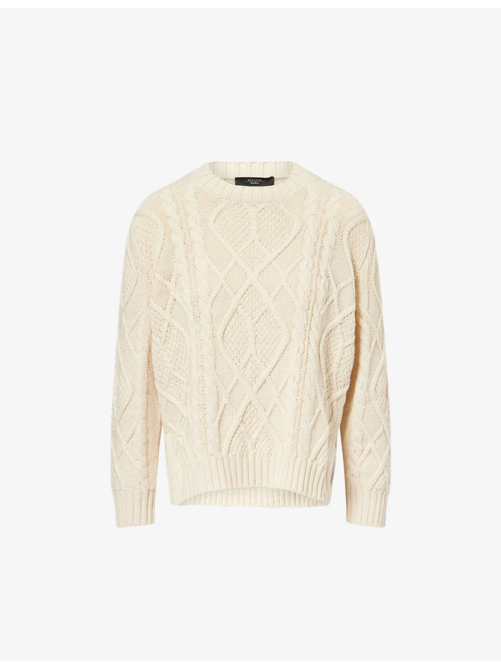 PRODUCT DETAILS - Weekend Max Mara cotton-blend jumper - 60% cotton, 40% acrylic - Regular fit, round neck, long sleeves, all-over cable knit, ribbed trims - Hand wash - True to size - Model is 5ft 10in/1.78m and wears a size small - Midweight, slight stretch Ref: R04552972
