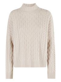 cable-knit high-neck sweater Highlights - White - Cable knit - High neck - Long sleeves - Straight hem Imported Composition Fabric 100% Washing instructions Read Manufacturer Guidelines