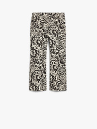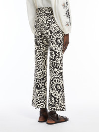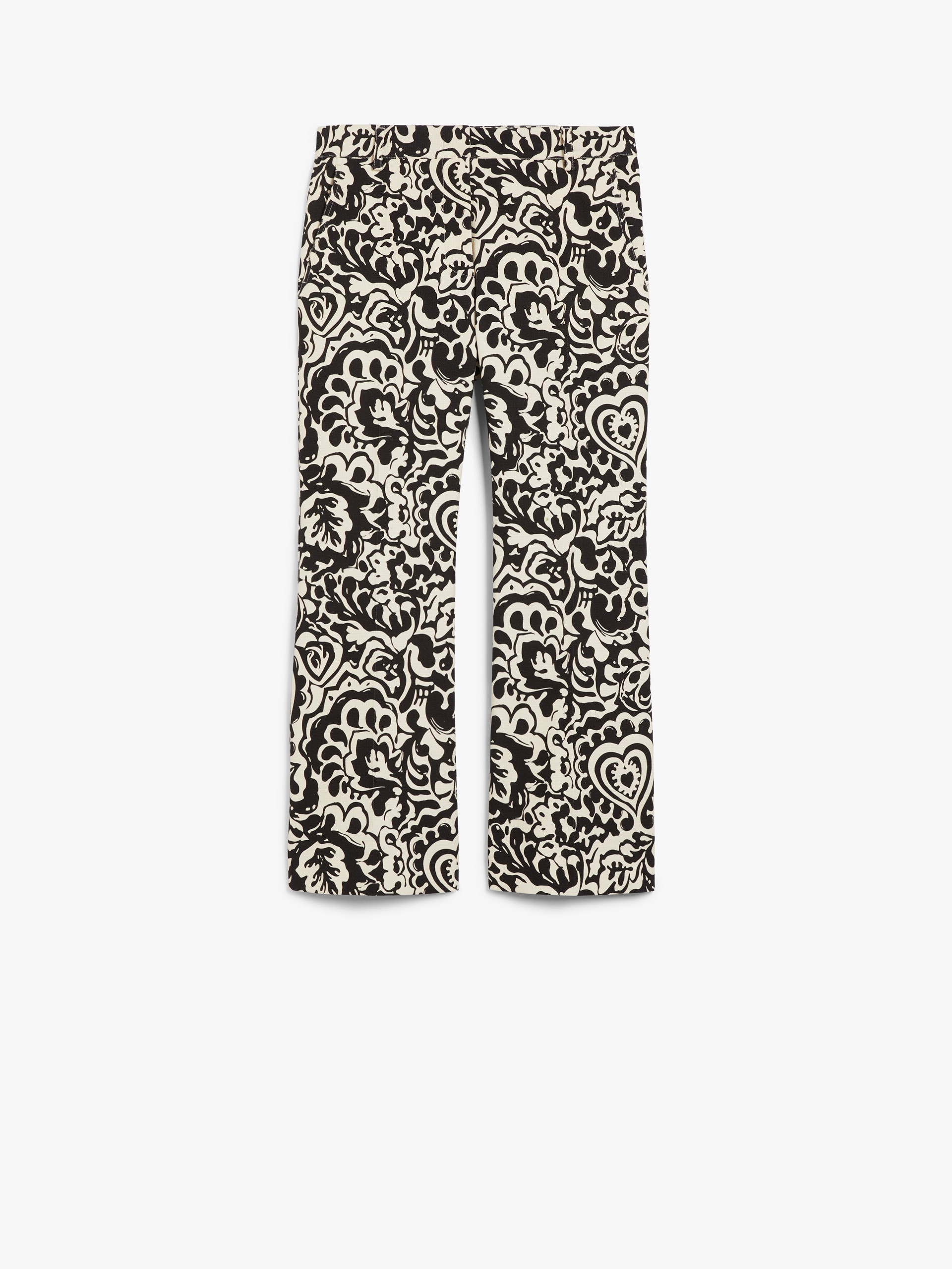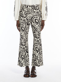 DETAILS Trousers in a printed stretch cotton canvas, featuring a flared silhouette at the hem, trouser crease and belt loops. The style features slant pockets on the sides and patch pockets on the back. Fastening with wide waistband tab, zip fly and small hook. COMPOSITION AND CARE 98% cotton, 2% elastane. Machine wash cold delicate cycle; do not bleach; do not tumble dry; line drying in the shade; cool iron; professionally dry clean perchloroethylene - mild process. Distributed by Max Mara S.r.l., registered office in Reggio Emilia (Italy), Via Giulia Maramotti 4, 42124 (IT)