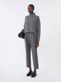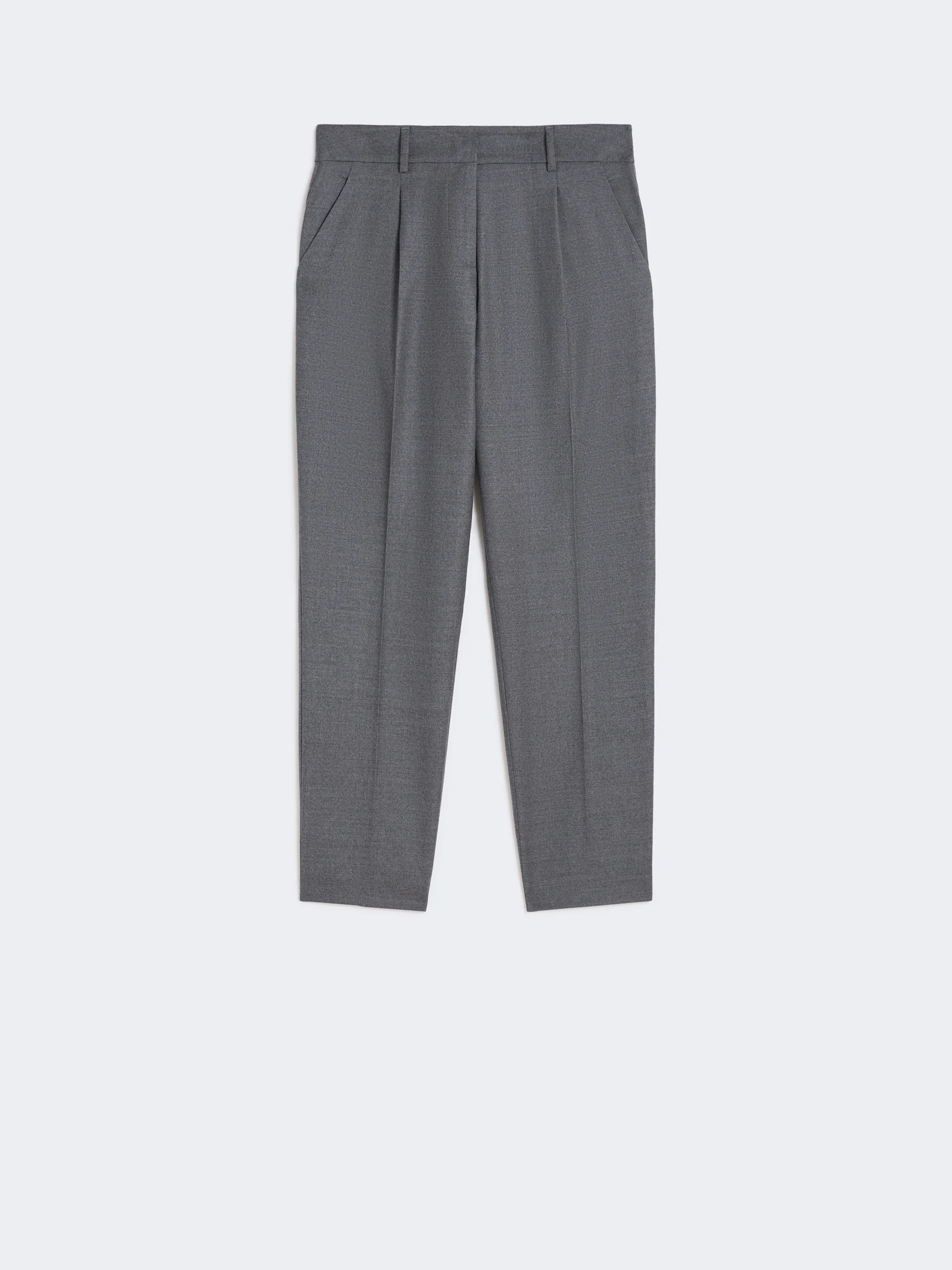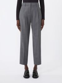 DETAILS Cigarette trousers with cropped ankle cut and darts at the waist that give volume. Stretch comfort wool flannel trousers Slightly slim fit straight line Fastening with a wide waistband tab, zip fly and small hook Slant pockets at the sides Double welt pockets with button at the back Belt loops and trouser crease COMPOSITION AND CARE 99% virgin wool, 1% elastane. Do not wash; do not bleach; do not tumble dry; cool iron; professionally dry clean perchloroethylene - mild process; do not wet clean. Distributed by Max Mara S.r.l., registered office in Reggio Emilia (Italy), Via Giulia Maramotti 4, 42124 (IT)
