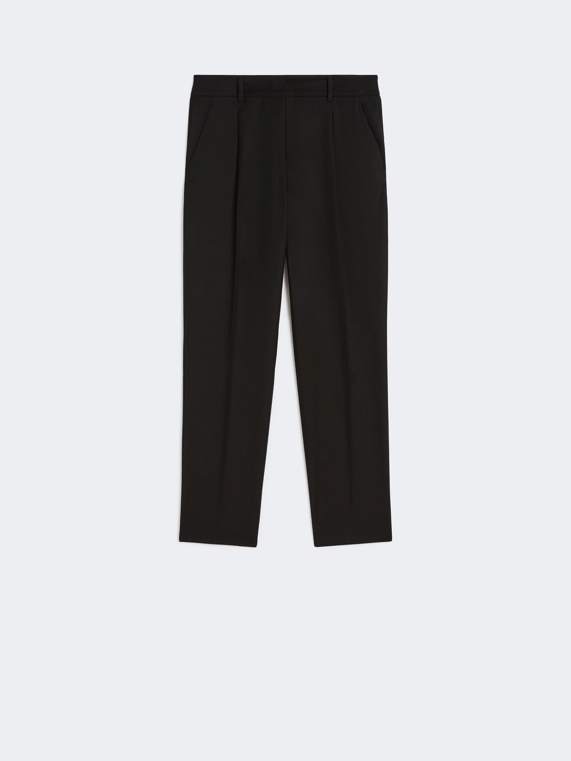 DETAILS Cigarette trousers with cropped ankle cut and darts at the waist that give volume. Stretch comfort wool flannel trousers Slightly slim fit straight line Fastening with a wide waistband tab, zip fly and small hook Slant pockets at the sides Double welt pockets with button at the back Belt loops and trouser crease COMPOSITION AND CARE 99% virgin wool, 1% elastane. Do not wash; do not bleach; do not tumble dry; cool iron; professionally dry clean perchloroethylene - mild process; do not wet clean. Distributed by Max Mara S.r.l., registered office in Reggio Emilia (Italy), Via Giulia Maramotti 4, 42124 (IT)