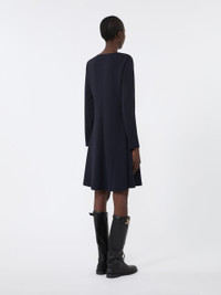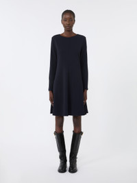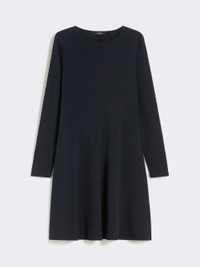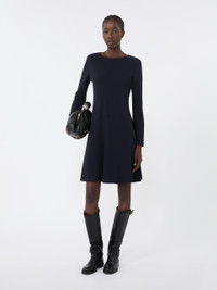 DETAILS Short dress with a fit and flare silhouette. Fitted and slightly flared at the hem. Fluid jersey dress Fitted lines, flared at the hem Boat neck Long set-in sleeves Unlined COMPOSITION AND CARE 56% triacetate, 44% polyester. Machine wash cold delicate cycle; do not bleach; do not tumble dry; flat drying in the shade; cool iron; professionally dry clean perchloroethylene - mild process; professional wet cleaning - very mild process.; iron with a cloth between.; using neutral detergent.; turn the articles inside out before washing.; to be ironed on reverse. Distributed by Max Mara S.r.l., registered office in Reggio Emilia (Italy), Via Giulia Maramotti 4, 42124 (IT)