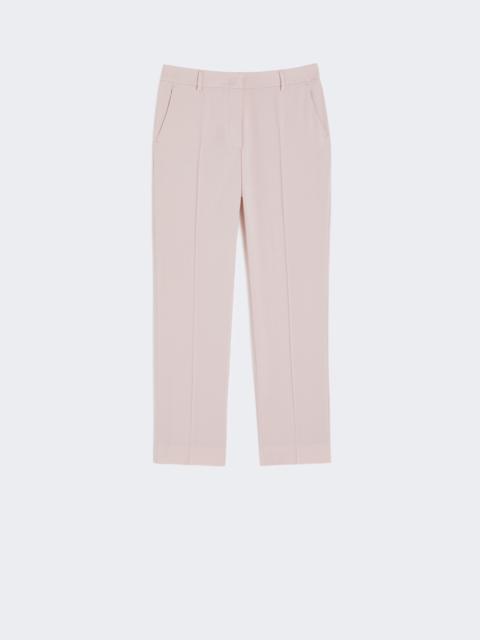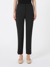 DETAILS Long ankle-grazer trousers with a distinctive cigarette cut. Trousers in natural stretch pure woollen cloth Slim fit High-cut waistband with a fly-covered zip and hook-and-bar fastening Slant side pockets Buttoned double-welt rear pockets Belt loops and pressed pleat detail COMPOSITION AND CARE 100% virgin wool. Do not wash; do not bleach; do not tumble dry; cool iron; professionally dry clean perchloroethylene - mild process; do not wet clean. Distributed by Max Mara S.r.l., registered office in Reggio Emilia (Italy), Via Giulia Maramotti 4, 42124 (IT)