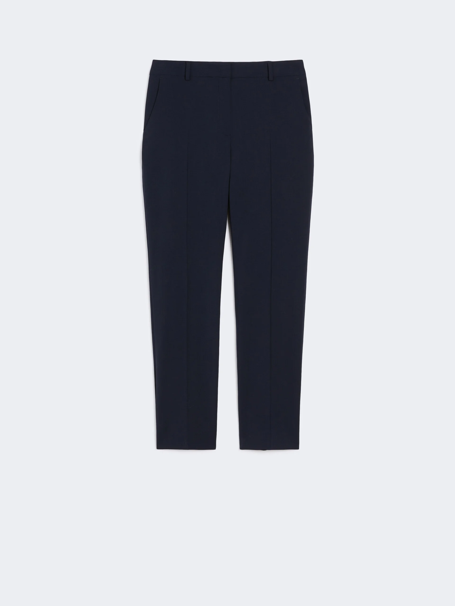 DETAILS Long ankle-grazer trousers with a distinctive cigarette cut. Trousers in natural stretch pure woollen cloth Slim fit High-cut waistband with a fly-covered zip and hook-and-bar fastening Slant side pockets Buttoned double-welt rear pockets Belt loops and pressed pleat detail COMPOSITION AND CARE 100% virgin wool. Do not wash; do not bleach; do not tumble dry; cool iron; professionally dry clean perchloroethylene - mild process; do not wet clean. Distributed by Max Mara S.r.l., registered office in Reggio Emilia (Italy), Via Giulia Maramotti 4, 42124 (IT)