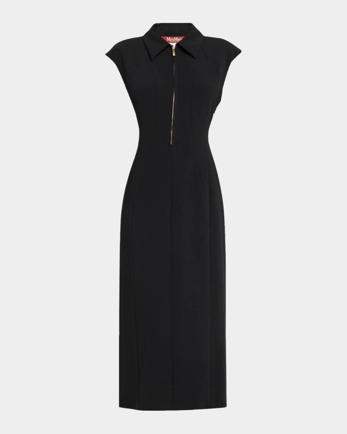 This Weekend Max Mara midi dress is crafted from softly structured fabric with princess seams that accentuate the waistline Spread collar; partial zip front Cap sleeves Princess seams Center back slit Hem falls below the knee Column silhouette Step-in style Triacetate/polyester Machine wash cold Made in Poland SIZE & FITModel measurements: 5 & apos;10" tallModel is wearing a US size 4/Small
