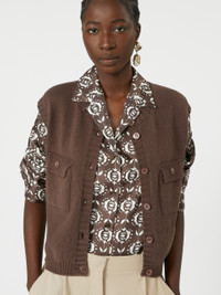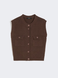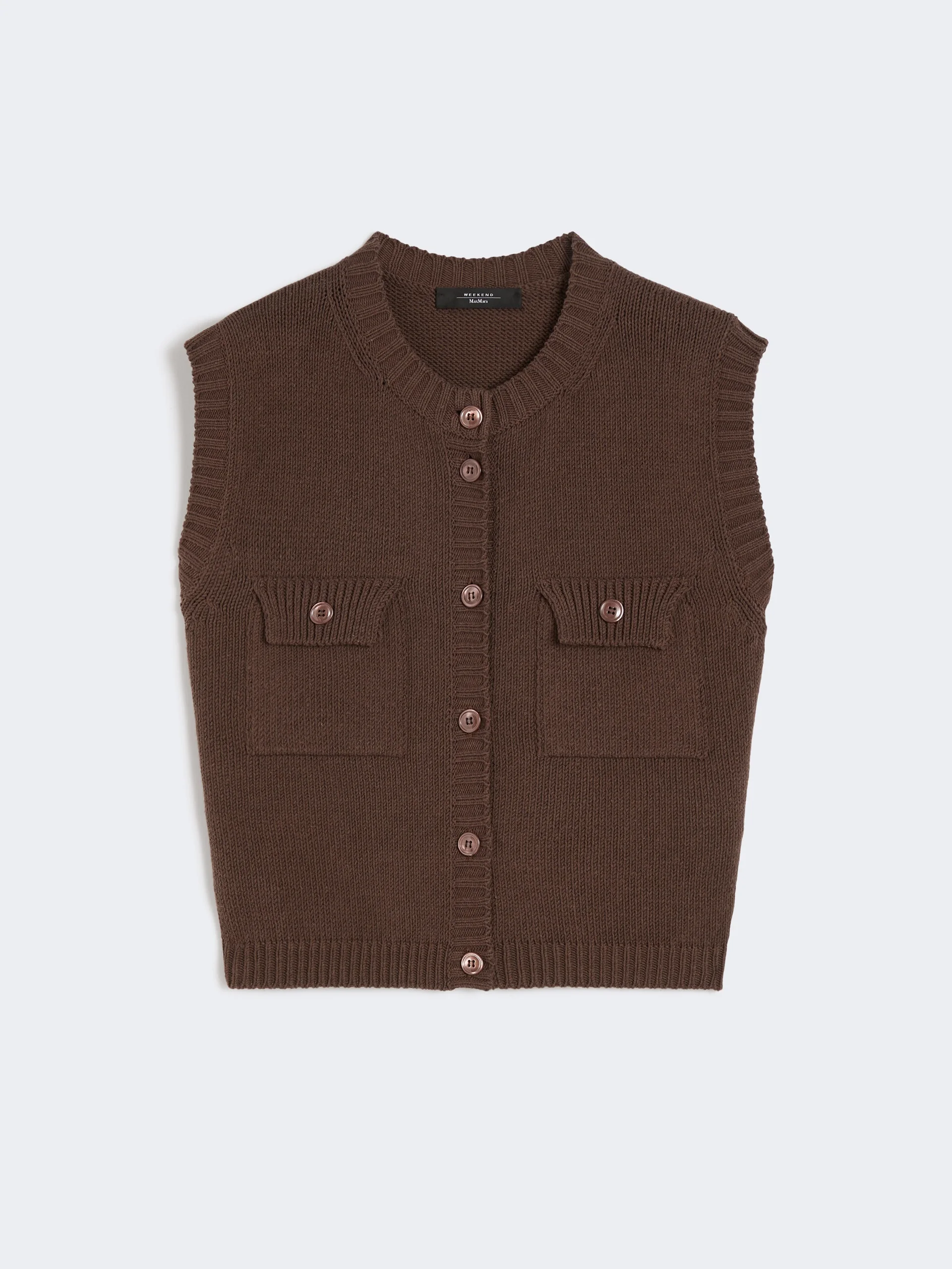 DETAILS Gilet featuring patch breast pockets and mother-of-pearl buttons. Stockinette-stitched cotton-blend yarn gilet Regular fit Round neckline Front button fastening Rib-knit finishes and trims COMPOSITION AND CARE 60% cotton, 40% acrylic. Hand wash cold; do not bleach; do not tumble dry; flat drying in the shade; cool iron; professionally dry clean perchloroethylene - mild process; do not wet clean.; iron with a cloth between.; using neutral detergent. Distributed by Max Mara S.r.l., registered office in Reggio Emilia (Italy), Via Giulia Maramotti 4, 42124 (IT)