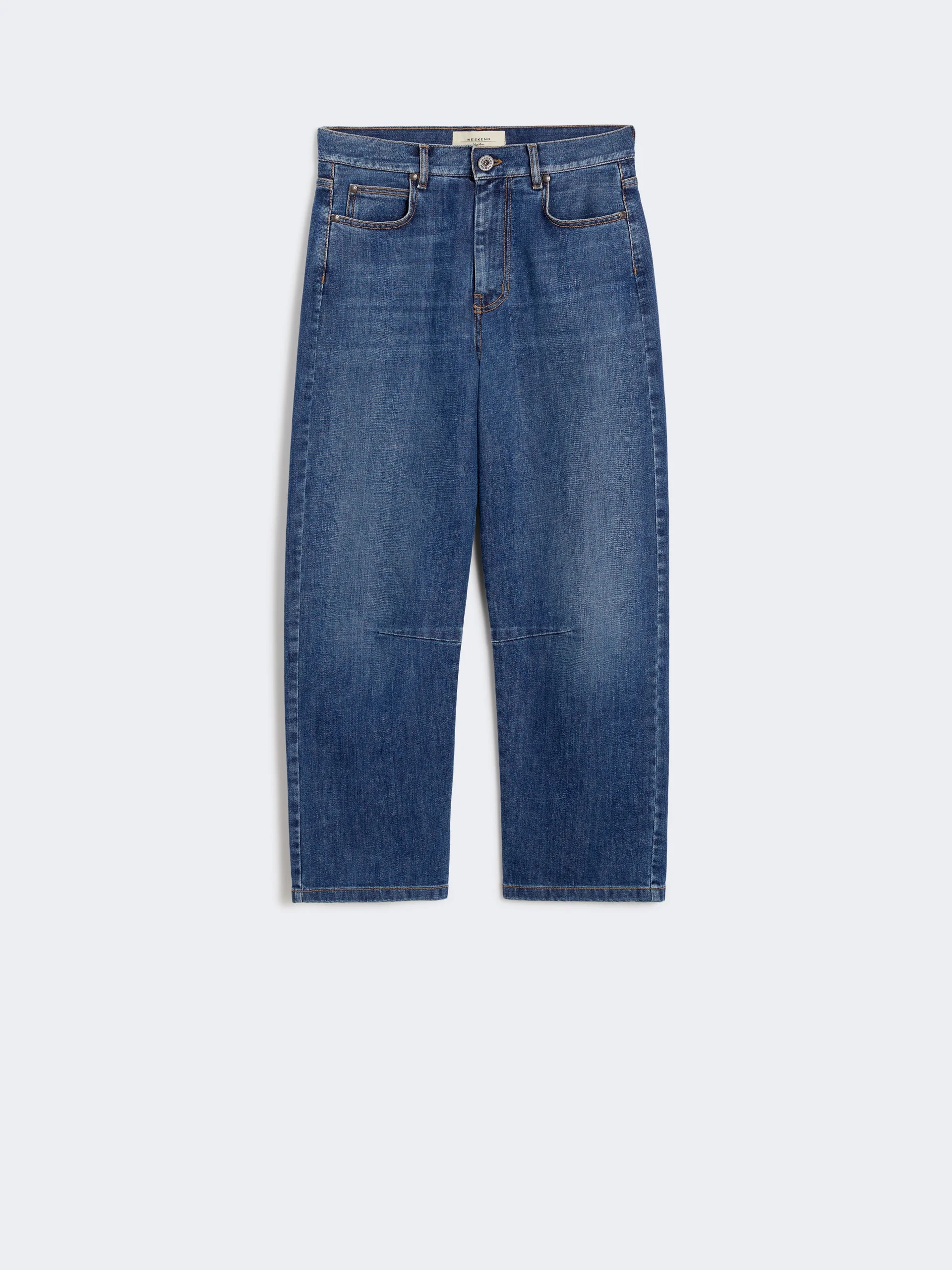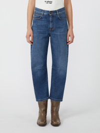 DETAILS Barrel-leg jeans featuring internal sewn dart detail at the knees. Main fabric with at least 50% cotton fibers, grown and processed according to organic farming systems Jeans in authentic stretch cotton denim Wide fit that tapers at the hem Fly-covered zip and tack button fastening 5-pocket model Rear waist yoke Metal rivets and contrasting seams COMPOSITION AND CARE 99% cotton, 1% elastane. Machine wash cold delicate cycle; do not bleach; do not tumble dry; line drying in the shade; cool iron; do not dry clean.; wash the garment while it is fastened.; don’t iron the labels.; turn the articles inside out before washing.; take care when wearing light-coloured clothes or accessories because, with the heat of the body, the indigo fabric , may fade and stain. be careful while sitting on light coloured surfaces, especially if wet. wash garments separately and always turned inside out. hang the garment turned inside out by avoiding to expose it to direct sunlight. avoid removing isolated stains.; contains non-textile parts of animal origin. Distributed by Max Mara S.r.l., registered office in Reggio Emilia (Italy), Via Giulia Maramotti 4, 42124 (IT)